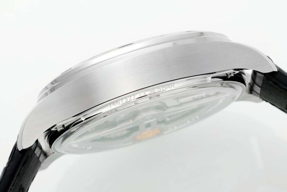 MOVEMENT:Asia New Clone 52010 Automatic Movement, Platinum Plated bridges and insignia similar to Genuine IWC52010 Movement (Working Power Reserve Needle)
