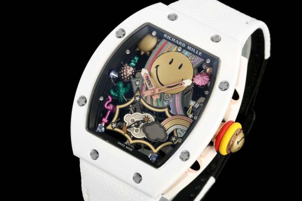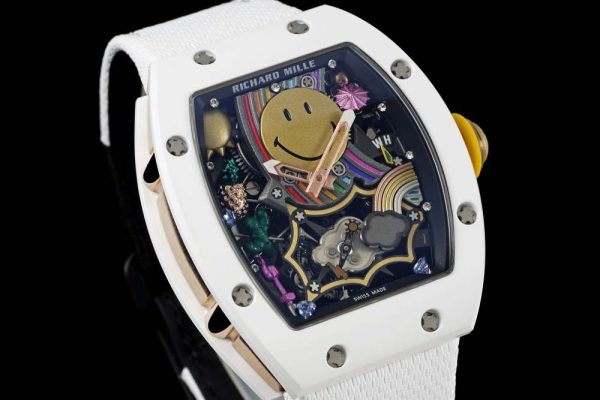RM88 Smiley 41mm White Ceramic Skeleton Dial on White Nylon Strap RMF Tourb