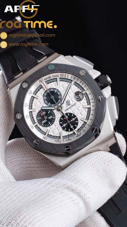 Royal Oak Offshore 44mm SS Ceramic Bezel APF 1:1 Best Edition White Dial on Rubber Strap A3126