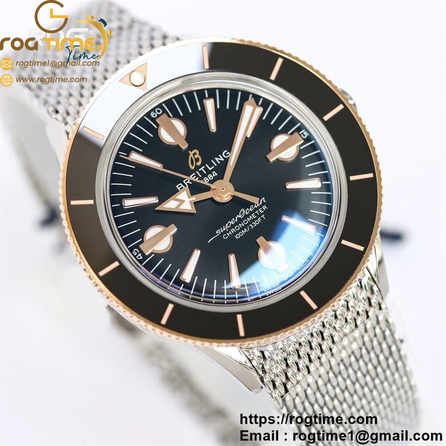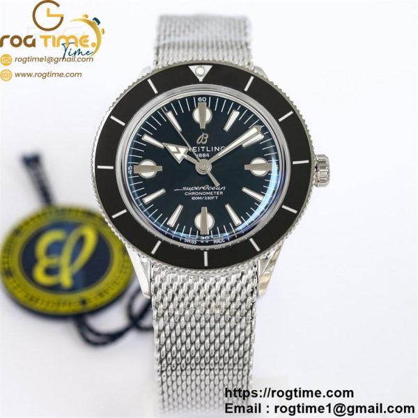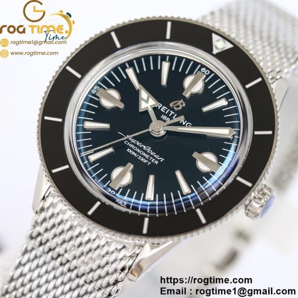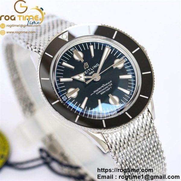 | Description | SuperOcean Heritage 42mm SS GF 1:1 Best Edition Black Ceramic Bezel Black Dial on SS Mesh Bracelet A2824 |